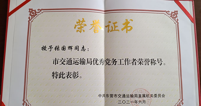 • 張國輝榮獲“市交通運輸局優(yōu)秀黨務工作者”